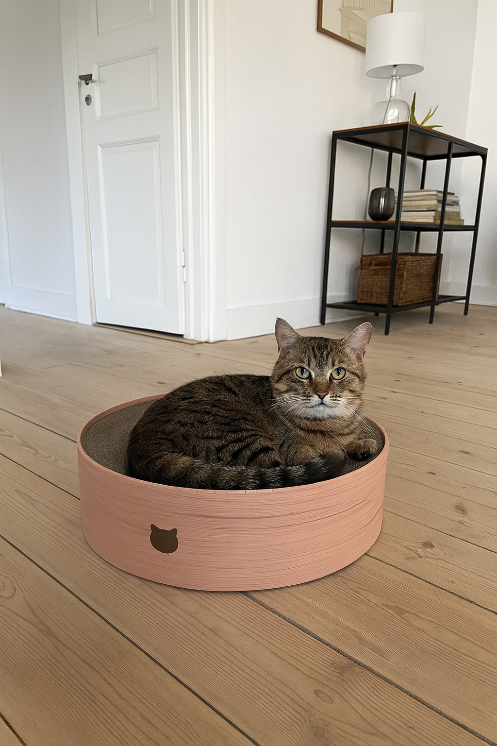 Det robuste papmateriale sikrer lang levetid, mens det enkle og æstetiske design passer naturligt ind i hjemmets indretning – et praktisk møbel, der også ser godt ud.