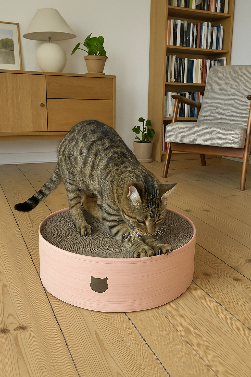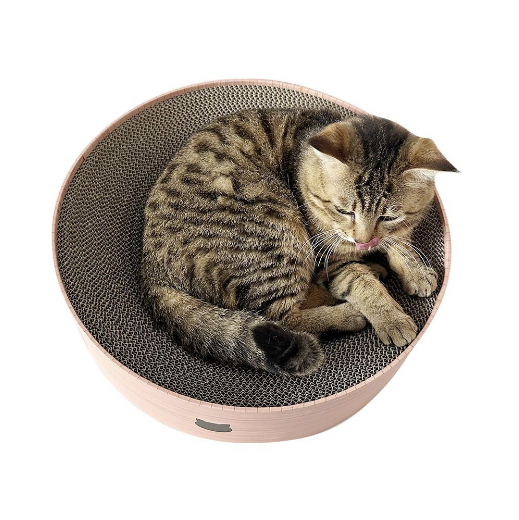 Produktet kombinerer kradsebræt og seng i ét, så din kat både kan tilfredsstille sit naturlige behov for at kradse og samtidig have et behageligt sted at hvile og slappe af.