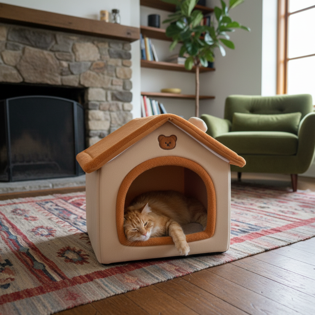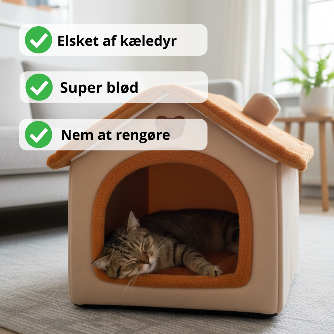 Giv din kat et sted, der føles som et varmt kram. Den bløde og fluffy inderside gør huset til det perfekte sted at slappe af, sove og føle sig tryg. De fleste ejere fortæller, at deres hund straks tog det til sig – et klart tegn på kærlighed ved første lur!
